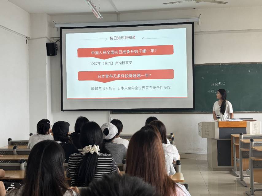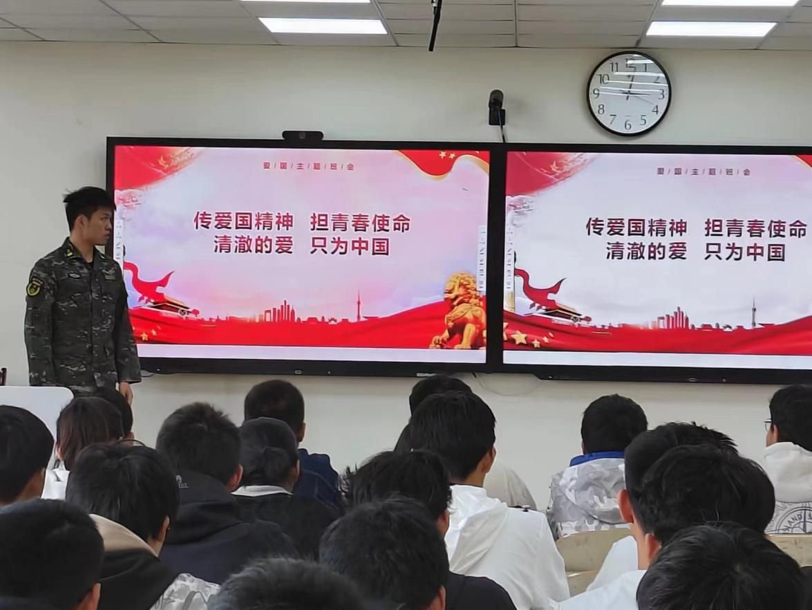 数学与统计学院辅导员给学生开爱国和国防教育主题班会