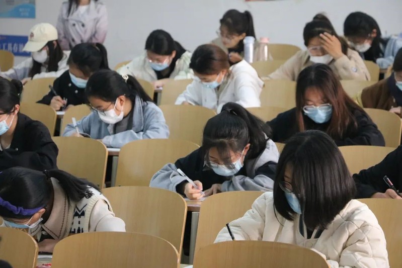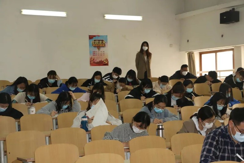 同学们提前有续进入考场,端坐在桌前,等待监考员发卷。考试开始前,监考员宣布了考试规则和答题要求,强调了考场纪律,随后分发试卷及答题纸。面对考题,大家沉着冷静,全神贯注,迅速回忆所学知识,做出应答。在监考人员认真地巡视下,两个考场秩序井然,考试有条不紊地进行。我院历来以公平公正为准则,从严要求考试纪律,切实规范流程设计,要求全体参考人员态度端正、严肃认真、维护考场秩序、尊重考试规则。