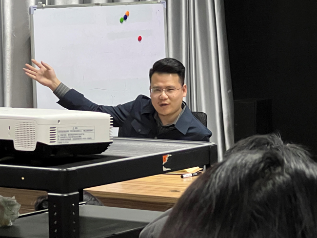 本网讯 校外专家进课堂,构建育人“合力场”。3月20日,传媒学院教学质量提升月系列活动第三场举行,在杨若冰老师主持的《影视创意与制作》课堂上,来自三止文化传媒(临沂)有限公司的李丁丁导演为同学们分享了影视编导创作全流程的经验和做法。
