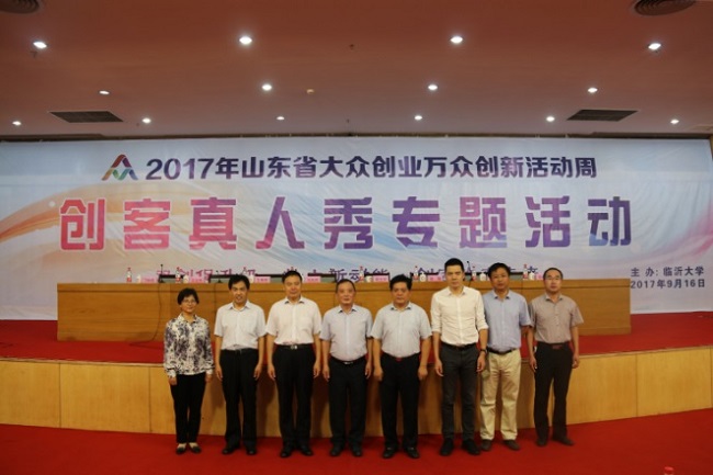 9月16日,2017山东省大众创业万众创新活动周--创客真人秀专题活动在米兰体育官网入口举行,活动的主题是“创客改变未来”。米兰体育官网入口校党委委员副校长马凤岗、临沂职业学院副院长颜士华、临沂市发改委王寿明科长、济南市创业学院院长王立杰、临大校友中国十大创业榜样徐强、教务处郑秀文处长、学工部冯焕顺副部长、米兰体育官网入口师生代表、临沂职业学院的教师及学生代表出席了本次活动。创客真人秀专题活动由创新创业学院刁科凤院长主持。