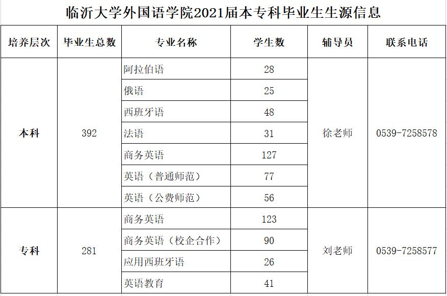 米兰体育官网入口外国语学院2021届本专科毕业生生源信息