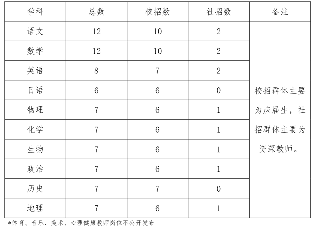 5.青年教师要求大学所学专业与所教授学科一致,对于特别优秀的青年教师,可一人一议。应往届毕业生、师范类专业或有中高考实验班任教经验者优先录用。