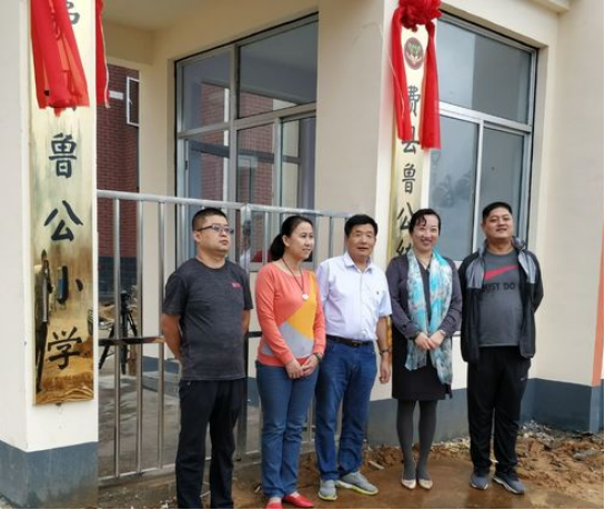 (费县鲁公小学2017年开始招生,开学第一天校长陈士晓和有关领导揭牌)