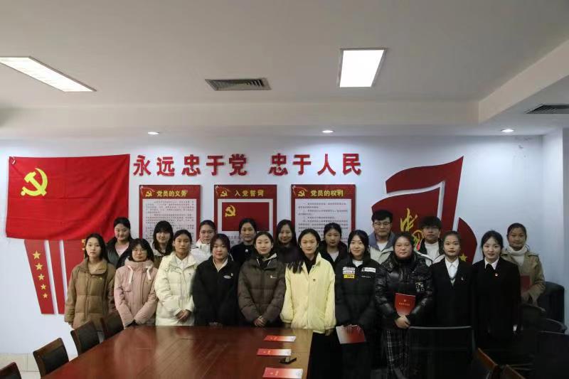 新党员代表于慧在发言中表示,作为新时代的大学生党员,今后一定牢记初心使命,继承和发扬革命前辈的光荣传统和优良作风,立志民族复兴,不负韶华,不负时代,不负人民,在青春的赛道上奋力奔跑,为实现中华民族伟大复兴的中国梦而努力奋斗。