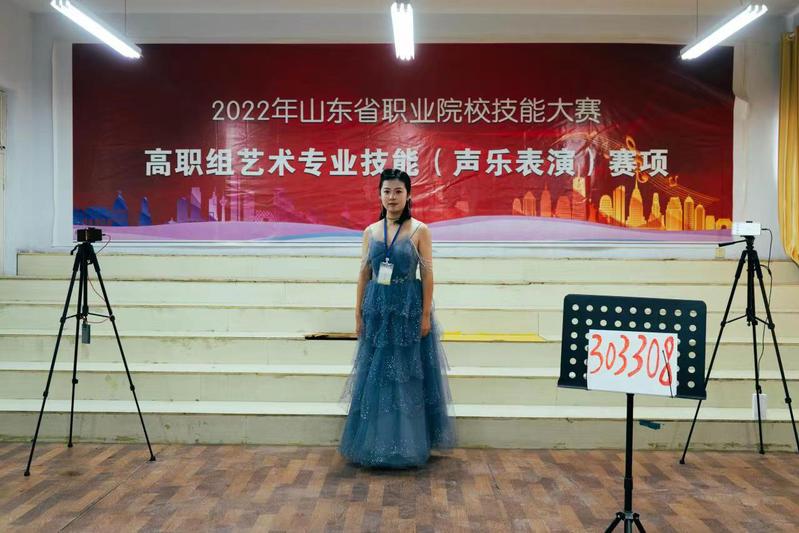 山东省职业院校技能大赛,是山东省中高职院校覆盖专业最广、参赛选手最多、社会影响力最大的学生专业技能大赛。赛前,教学科研办公室和人文与艺术教育系高度重视,精心组织,刘潇老师利用大量课余时间悉心指导学生练习比赛的各个环节,带领参赛学生积极备战、刻苦训练,经过艺术素养、新谱视唱、声乐演唱(《军营飞来一只百灵》、中外艺术歌曲《夜莺》、《复仇的火焰在我心中燃烧》选自歌剧《魔笛》夜后咏叹调)三轮激烈角逐,最终获得二等奖。