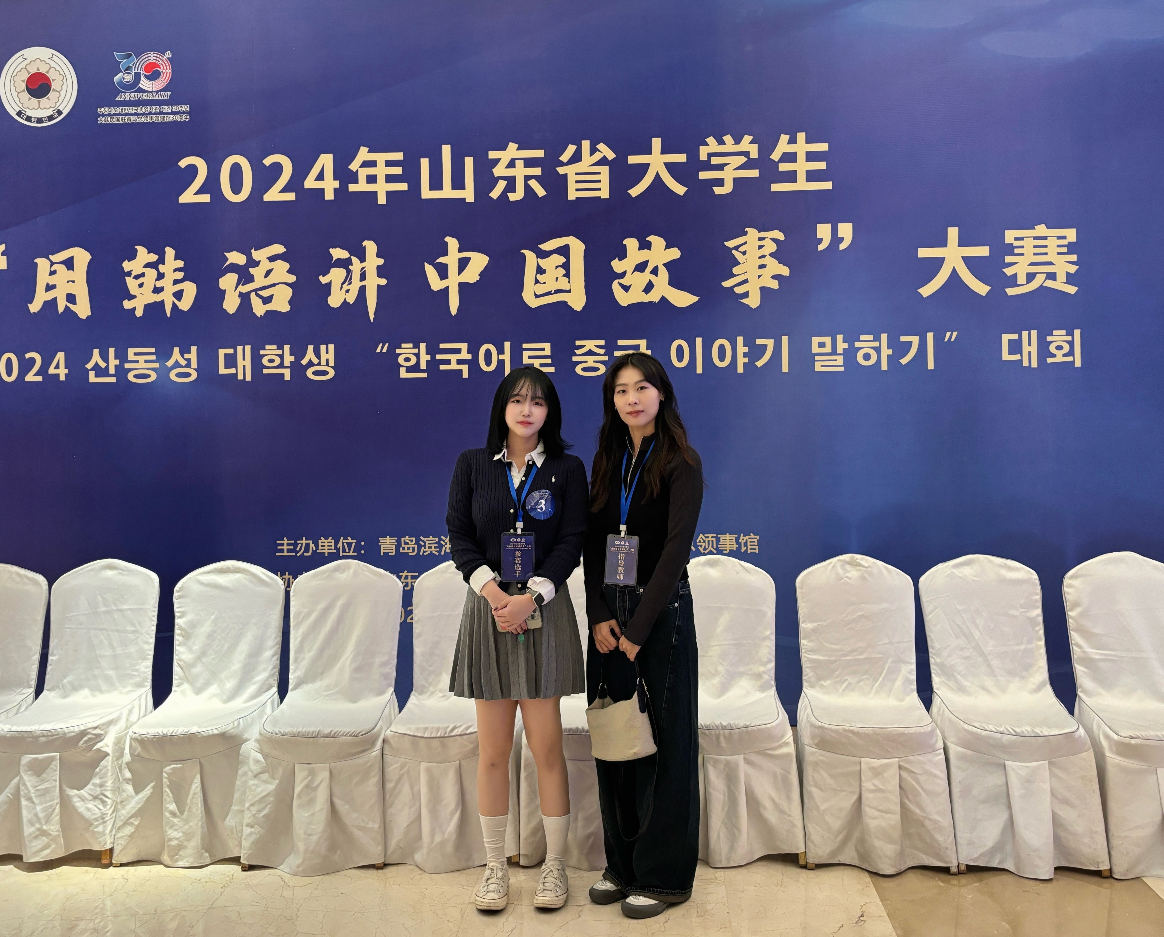 2024年10月26日,我院青年教师邓星辰带领韩国籍国际学生Lee Soobeen(李晓宾)参加山东省大学生“用韩语讲中国故事”大赛,荣获三等奖佳绩。本次比赛在青岛滨海学院举行,来自全省18所高校的21名中韩学生选手参加了比赛,共同以韩语为桥梁,讲述中国故事,展现中国文化的独特魅力。
