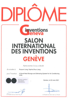 近日,我院梁儒全教授申报的“A Novel Heat Storage and Defrosting System for Air Conditioning Units”发明项目获得第48届日内瓦国际发明展览会银奖,这是我校首次获得此项国际发明展大赛荣誉。 该发明针对现今普遍采用的空调机组融霜系统包括四通阀反冲融霜和压缩机热气旁通除霜,它们需从室内吸收热量造成室内温度的波动,或依靠压缩机的摩擦功和冷凝器内部分热量参加融霜,导致除霜速度较慢等问题,研发了一种新型双套管式蒸发器以及与太阳能集热器和蒸发器相匹配的新型相变蓄热装置,需要融霜时将所收集的太阳能通过换热流体携带至双套管式蒸发器进行融霜,蒸发器内通过电磁阀控制换热流体和制冷剂的流动路径,这种新型融霜系统与传统的空调融霜系统相比,可节省20%左右的电能,具有重要的节能减排价值。