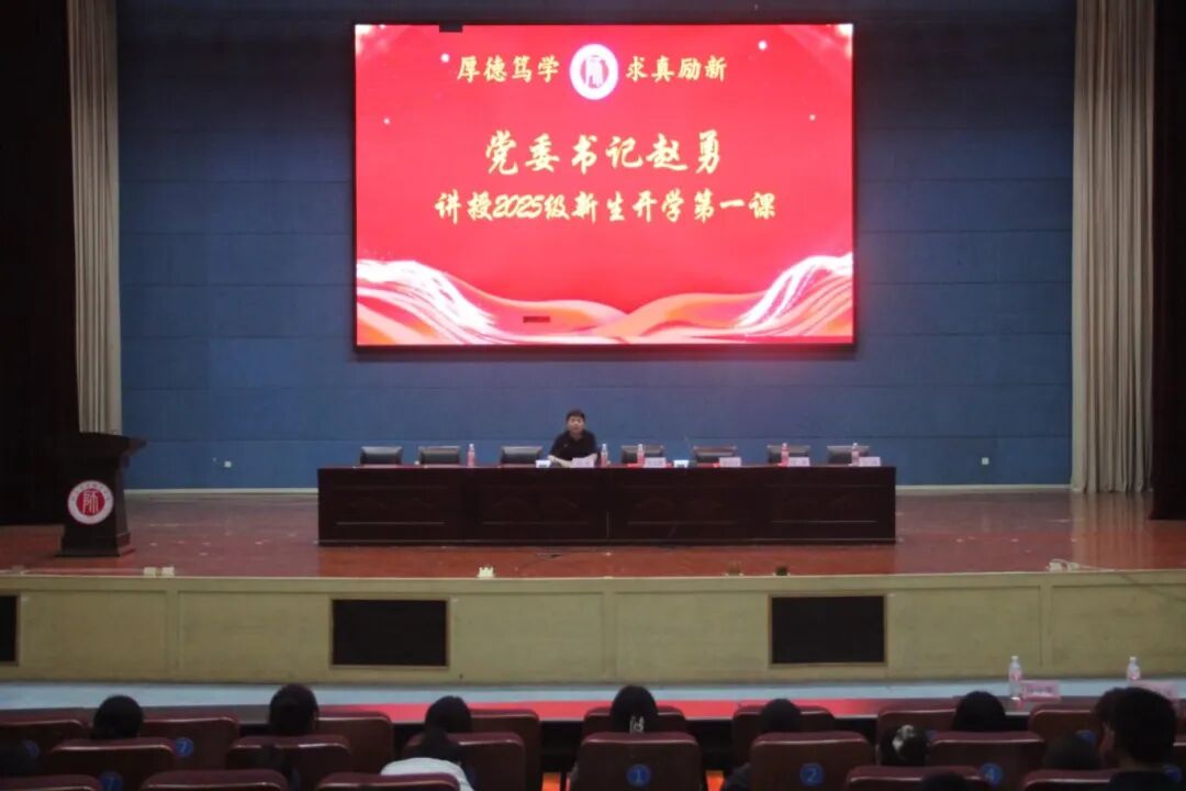 我院党委书记赵勇为2025级新生讲授开学第一课。主要围绕大学生活的重要方面展开。他强调我院学子应树立安全意识、加强道德修养、明确人生目标、培养批判性思维、常怀感恩之心。同时倡导包容与换位思考,将矛盾视为成长契机,为未来社会生活奠定坚实基础。