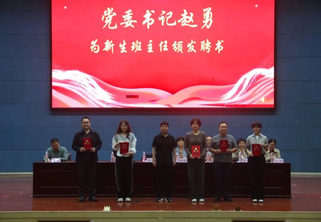 赵金霞宣读2025级新生班主任名单,聘请徐旭、薄怀霞、高云静、袁亚运、马金萍五位老师担任2025级新生班主任。