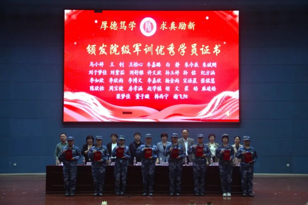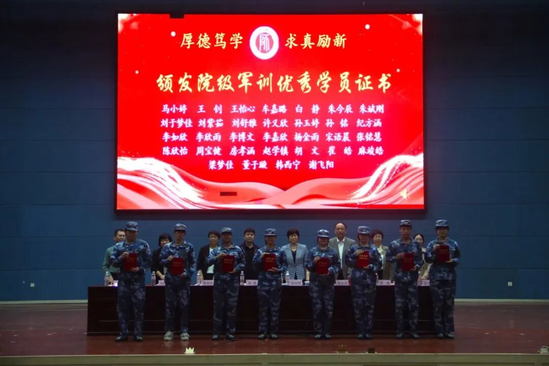 曹彦杰宣读2025级新生军训表彰决定,各位领导老师为获得“军训优秀学员”荣誉称号的学生进行颁奖。