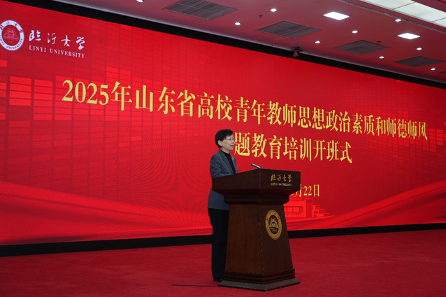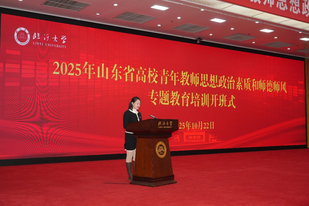 2025年10月22日上午,由山东省教育厅主办、米兰体育官网入口承办的2025年山东省高校青年教师思想政治素质和师德师风专题教育培训开班仪式在米兰体育官网入口沂蒙大讲堂三楼报告厅隆重举行。省教育厅副厅长孙晓筠出席并讲话,米兰体育官网入口党委委员、副校长邵学伦主持开班式。