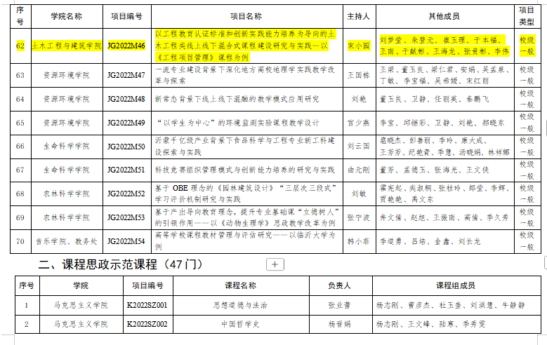 (9)宋小园.宋小园教学质量工程项目一流本科课程线上线下混合课程《工程项目管理》YLKC202160,在研,主持,2021年。