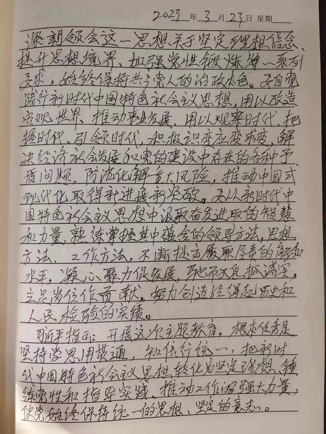 今年是全面贯彻落实党的二十大精神的开局之年,开展学习贯彻习近平新时代中国特色社会主义思想主题教育是贯彻落实党的二十大精神的重大举措。为深入学习贯彻习近平新时代中国特色社会主义思想,以学促行、以行促效,推动学习贯彻习近平新时代中国特色社会主义思想走深走实,鼓励离退休党员通过记录学习笔记的方式弘扬爱党、爱国、爱社会主义主旋律,离退休党委组织开展了“本色家园•学用新思想 奋进新时代”党员学习笔记大赛。活动自5月份启动以来,得到了广大离退休党员的积极响应,现展示部分参赛作品。