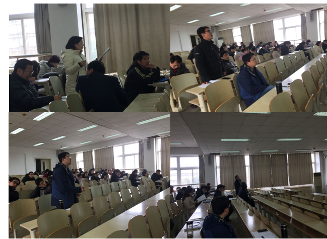 2月27日上午,结合学校《关于2018-2019学年度第二学期备听评审成果展示暨检查观摩活动的通知》,在寒假备听评审工作基础上,利用开学前的一周,继续深化教学研讨并做好新学期教学工作准备,集中进行备听评审成果展示,我院在226教室和各教研室开展集体备听评审活动。活动分两个阶段:第一阶段首先由谢焕田、刘建宇和郭政3位老师分别就创新创业教育示范课程、工程教育核心课程、师范类专业核心课程三个模块做了《数学建模》、《高等数学》和《数学分析II》3门课程的课程分析;其次听取吴越和田运波2位年轻教师的示范课;最后由学院几位教学经验丰富的老教师对上述活动进行点评。第二阶段由各教研室组织以教研室为单位分组备听评审。学校教学质量监督与评估办公室赵光怀主任、周厚春教授、贾瑞宝科长和兄弟学院(物理与电子工程学院、化学与化工学院和药学院)教学副院长组成的专家组现场观摩了学院集体备听评审活动。