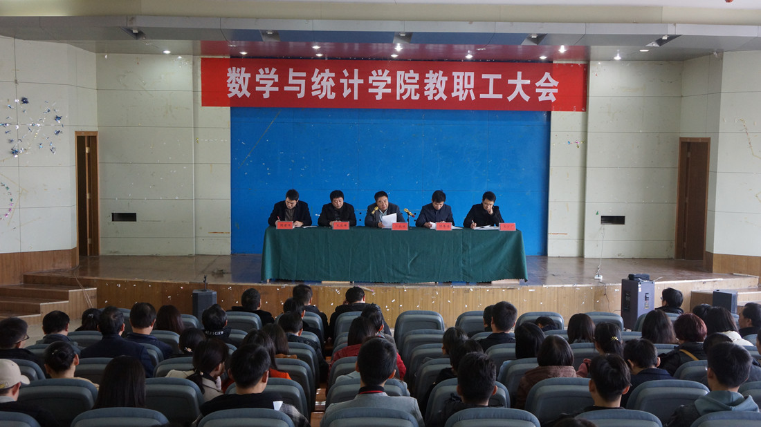 傅尊伟作了《数学与统计学院工作报告》,报告回顾了过去一年的成绩和存在的不足,明确提出了2019年的奋斗方向和目标。报告指出,学院要紧抓人才培养中心环节不放松,力争在高水平成果、高级别课题、高额度经费、高层次获奖、高质量就业等方面实现更大突破,紧盯“走在前列”目标定位,打造一流专业、建设一流学科、争创一流学院,提升党建和思政工作水平,落实“一五三”工作任务,着力“强化特色、突出红色、办出成色”。做好人才引进、国际交流与合作工作,做好电子信息学位点培养方案制定、导师遴选和2020年招生前的准备工作,梳理数学一级学科硕士点申报的前期准备工作。报告强调,2019年,是新中国成立70周年,也是学院抢抓机遇妥善应对诸多挑战的关键一年,学院以习近平新时代中国特色社会主义思想为指导,在学校党委的坚强领导下,全院师生以抓铁有痕、踏石留印的劲头狠抓落实,以时不我待、只争朝夕的精神投入工作,为开创数学与统计学院美好的明天而努力奋斗,为创建全国知名区域特色鲜明的创新创业型大学作出新的更大贡献。