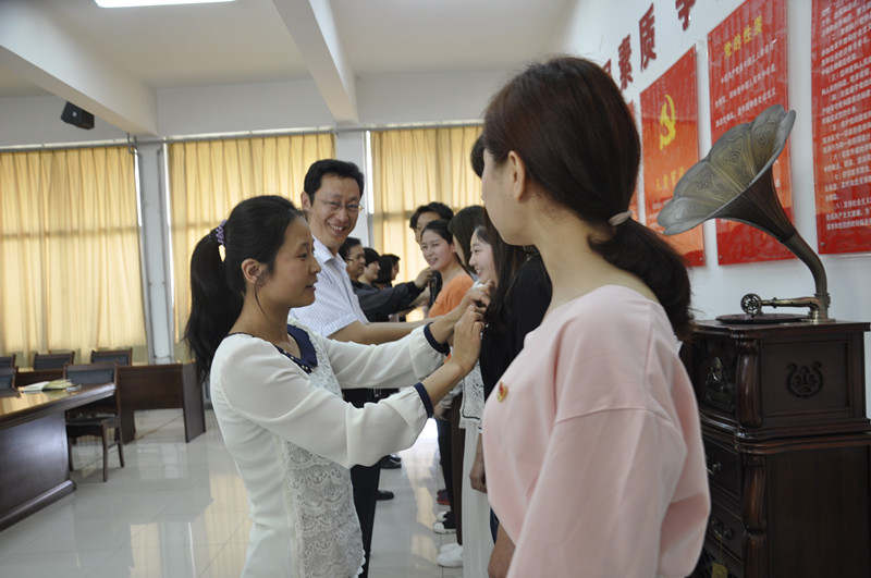 为进一步加强对学生党员的教育管理,发挥学生党员示范引领和榜样带头作用,强化党员意识,争当“两学一做”模范,使每一位学生党员亮出党员身份,树立党员形象,发挥党员作用,更好地以实际行动为祖国增光添彩,根据学校《关于在学生党员中开展“提升素养,向我看齐”活动的通知》精神,音乐学院学生党总支全面启动学生党员“提升素养,向我看齐”活动,于5月25日上午9:00在308会议室举行了学生党员党员徽章佩戴仪式。学生党总支全体师生党员参加,党委书记李刚到会亲自为学生党员们佩戴党员徽章并作重要讲话。仪式由党委副书记任芳主持。