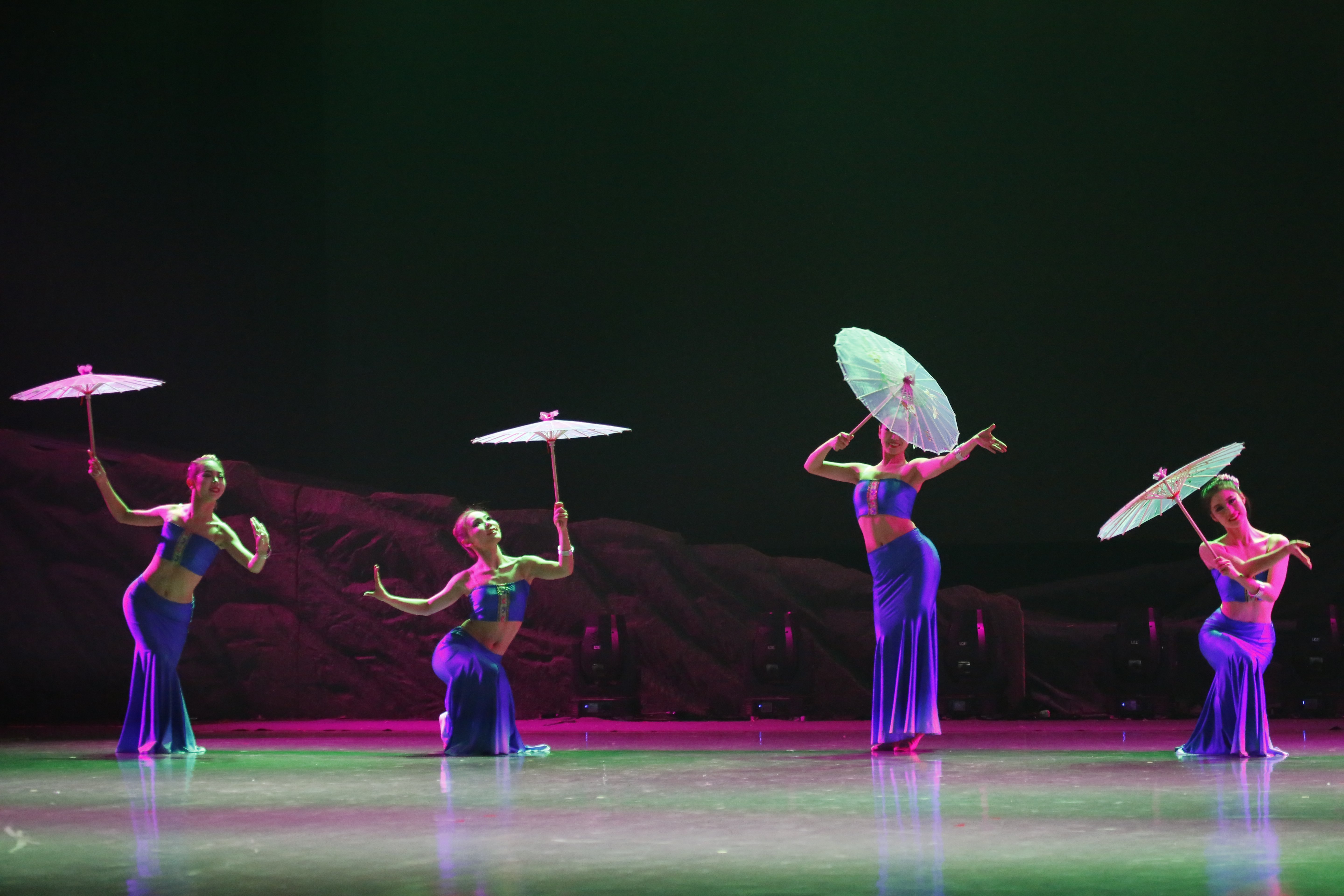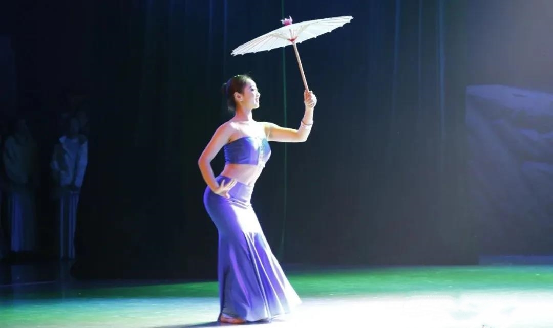 刘宁老师指导,2018级舞蹈学班女生表演的《傣家女儿傣家雨》。一个个曼妙的身姿,一把把半展的油纸伞,舞动的是傣家女儿的柔情似水,半遮的是傣家女儿的羞涩动人。