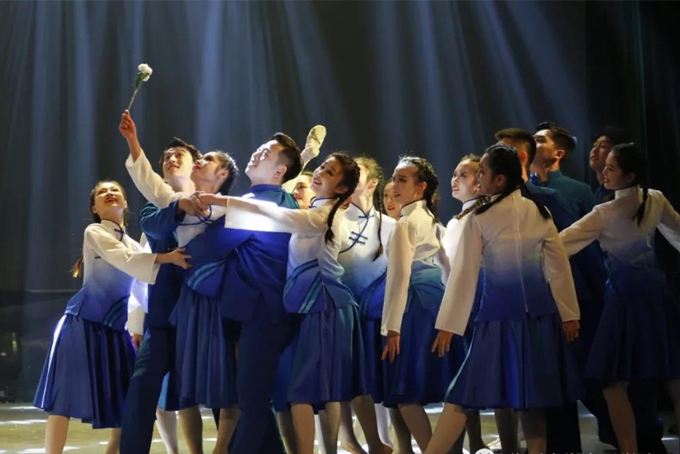 姜莎莎老师指导,2019级舞蹈学班表演《敬》。在辽阔的草原上,有这样一群活泼动人的女子,她们以头托碗,以舞传情,用灵动的身姿,传递出来自草原最美的祝福。