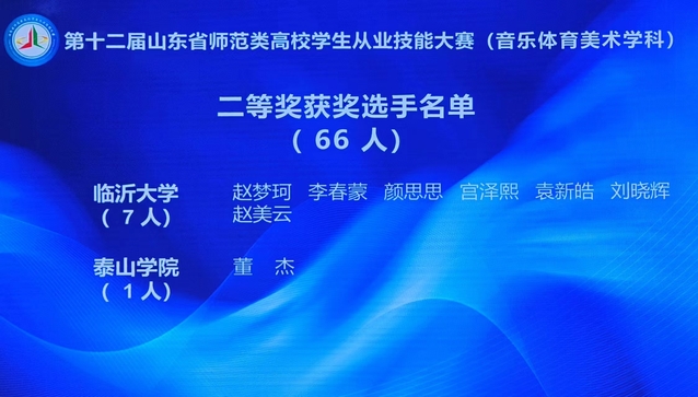 7月3日,山东省第十二届师范类高校学生从业技能大赛(音体美学科)决赛在淄博举行。经过激烈角逐,我院学生颜思思、宫泽熙、袁新皓凭借出色的表现,斩获3个二等奖。