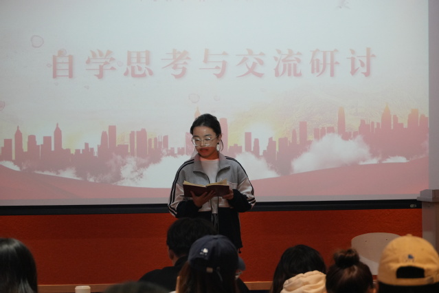 我院辅导员王鲁艳带领学员自学思考和交流研讨,旨在加深对之前课程内容的理解内化、交流共享。