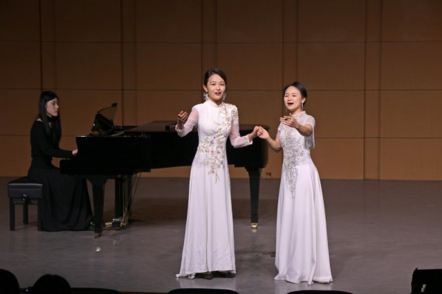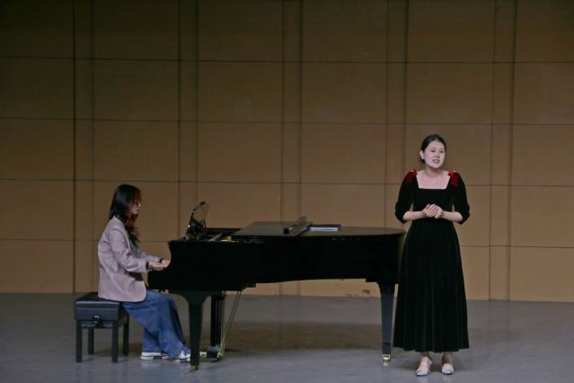 两位同学把钢琴明亮且具有颗粒感的音色和长笛柔美温和的音色巧妙融为一体,向我们展示了这一曲奇妙的合奏,让现场的同学都感受到了内心的平静。