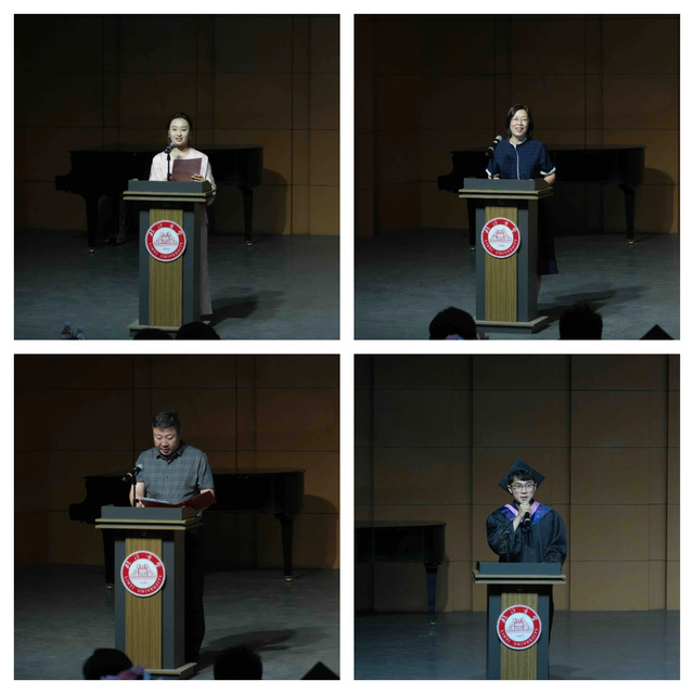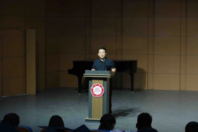 毕业生家长代表张明发言,感谢学校、感恩老师对孩子的悉心培养,学校给予文化滋养,孩子收获的不仅有专业技能,还有底气与风骨。希望毕业生不忘初心,用音乐抵御风浪、温暖他人。
