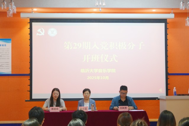 10月10日下午,音乐学院分党校举行第29期入党积极分子培训班开班仪式,我院党委书记解克萌出席并作动员讲话,仪式由学生党支部书记、我院团委书记蔡晓青主持。