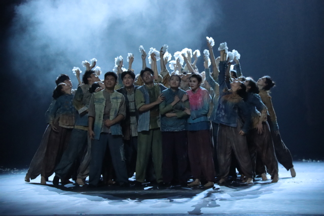 全剧分为序《风光》、四幕《风云》《风烟》《风涛》《风华》及尾声《长风》,采用回旋曲式结构和“多线并进”的叙事方式,将“独轮车”“纺车”等革命文物转化为舞台意象,用肢体语言再现信仰的力量与情感的共鸣。