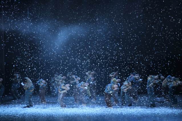 全剧分为序《风光》、四幕《风云》《风烟》《风涛》《风华》及尾声《长风》,采用回旋曲式结构和“多线并进”的叙事方式,将“独轮车”“纺车”等革命文物转化为舞台意象,用肢体语言再现信仰的力量与情感的共鸣。灯光、舞美与多媒体影像的巧妙结合,营造出宏阔而温情的视觉空间,让观众沉浸式感受红色文化的崇高与震撼。