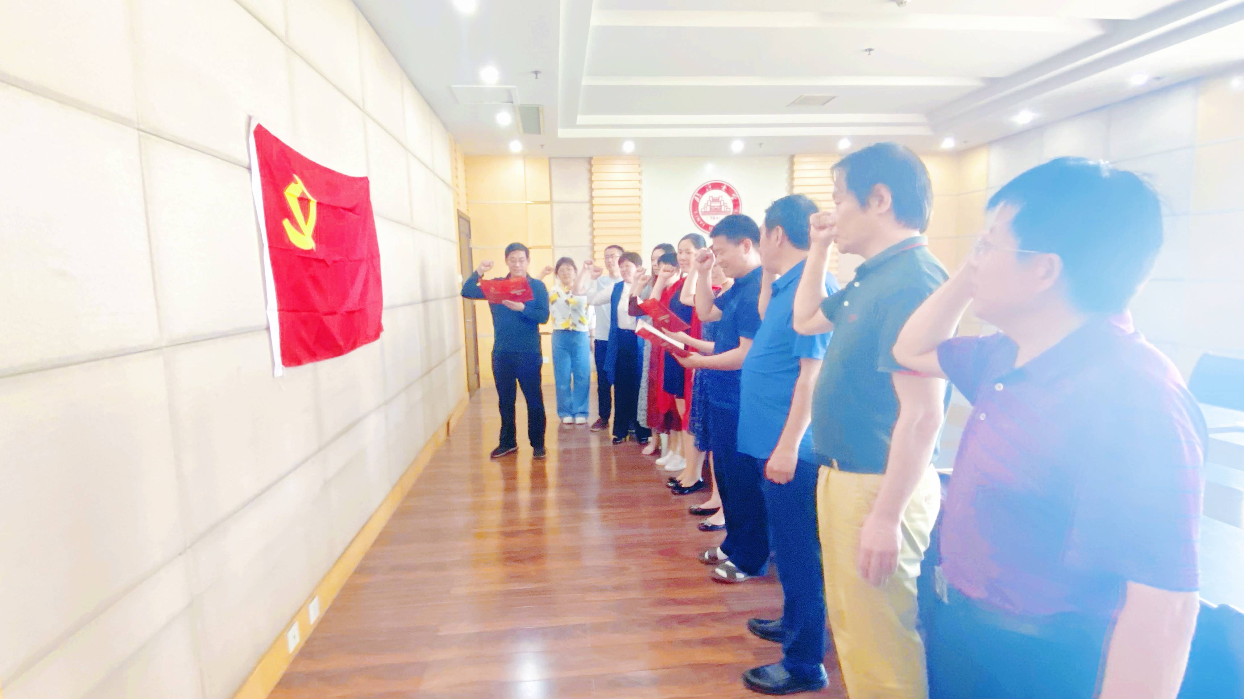 支部书记张立梅将学校党委精心定制的“政治生日贺卡”发放给孙士军、卢中华、张润芝三位党员;全体党员在孙士军同志带领下宣誓,重温入党誓词,重回当初加入党组织的那一刻。