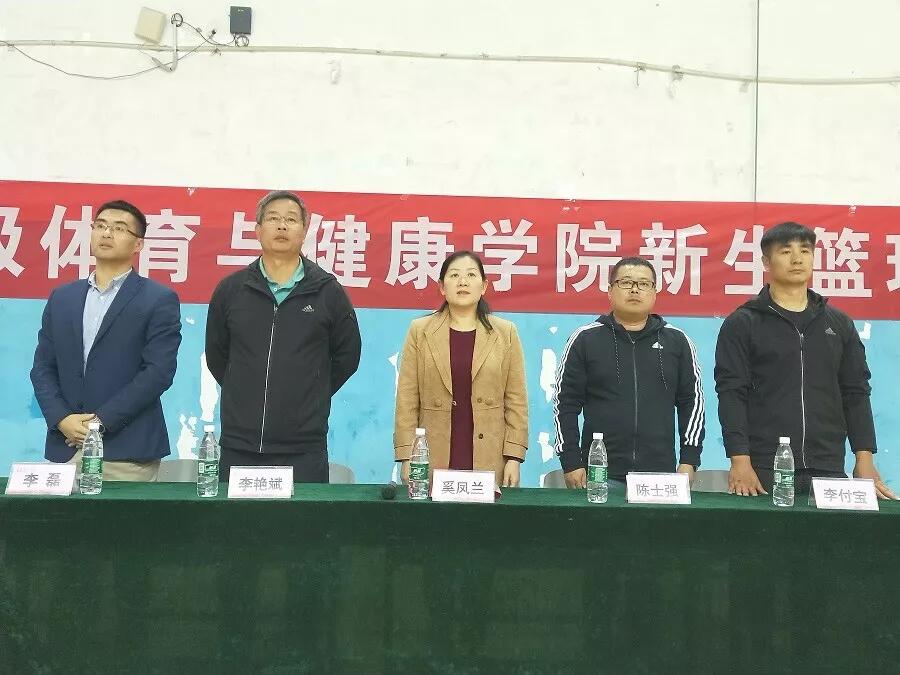 我院迎新篮球赛开幕式于10月17日晚,在篮球馆拉开帷幕。参加本次活动的有党委书记奚凤兰,党委委员李艳斌,团委书记陈士强,辅导员李付宝、李磊。