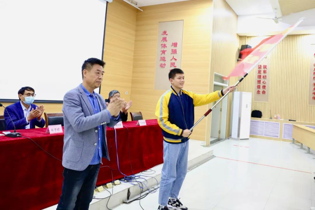 滕向农谈到,党员作表率打扫学院卫生是体育与健康学院传统项目,希望高年级学生党员、学生干部为低年级作表率。本次大扫除,不仅仅是打扫学院卫生,更是改造思想、打扫思想上的灰尘。随后,滕向农指出学院卫生存在的问题,一卫生死角多;二学生不注意保持教室环境;三随意扔烟头;四带早餐进教室。我院正在参与省级文明校园创建,创建文明校园将会是同学们在大学四年中最美好的回忆,希望学生党员、学生干部做好表率榜样、带好头,配合学校学院工作,为校园文明创建一份贡献力量。毛子成下发打扫卫生任务,本次大扫除是学院风貌的体现,更是党员价值、学生干部价值的体现。希望全体学生党员、学生干部认真做好组织分配任务,用最高标准要求打扫好卫生,保质保量完成任务,以优异表现向党组织汇报。滕向农向学生党员代表授旗。学生支部书记李艳斌、彭寅分配扫除任务,协调全体人员做好分工。