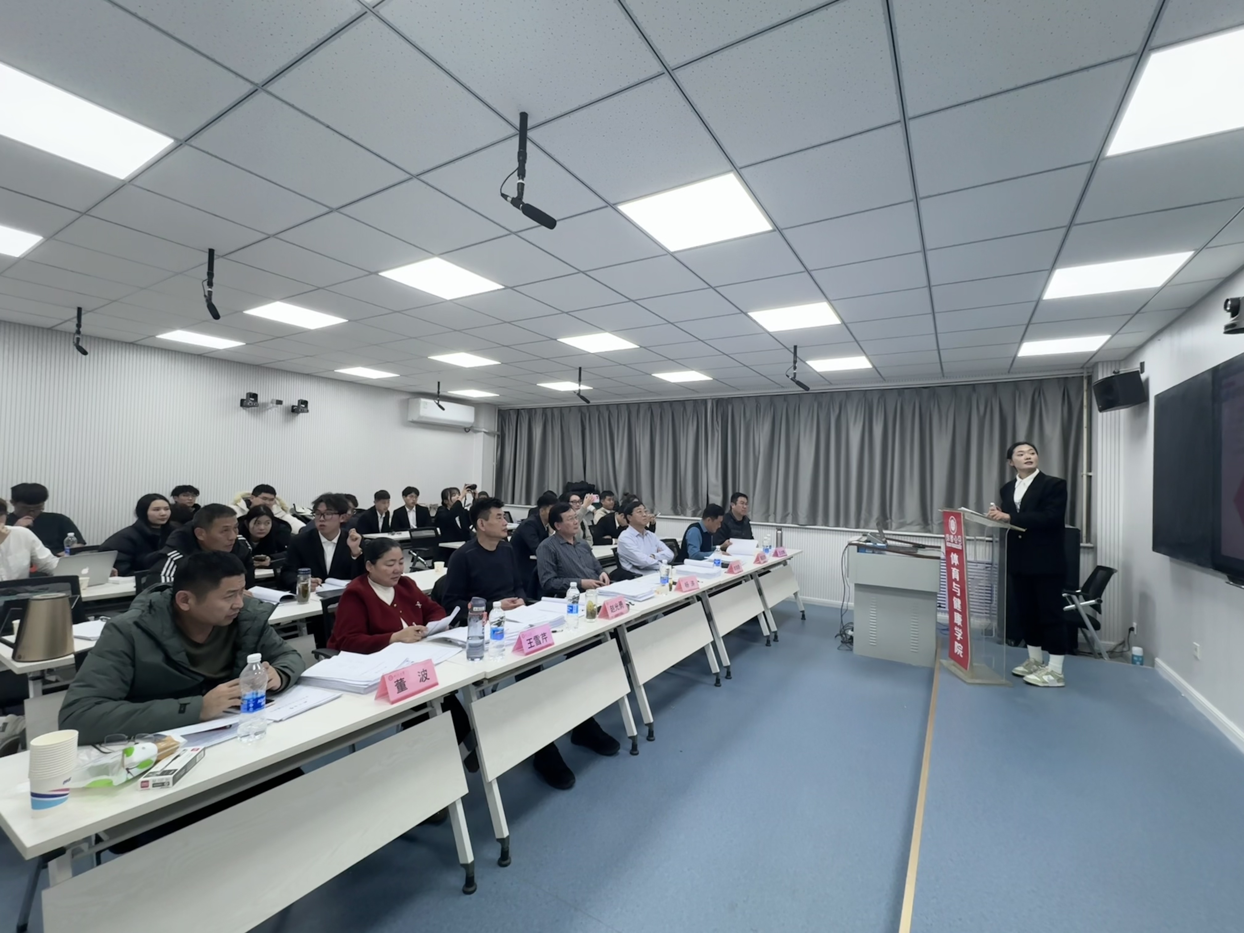 参与答辩的23级研究生们,围绕体育训练、运动康复、体育教育等多个前沿方向,精心汇报了自己的研究课题。从理论探讨到实践应用,从数据分析到创新方法,每一个汇报都展现了同学们对体育与健康领域的深刻理解和独到见解。在答辩过程中,评审老师们针对每位同学的汇报内容,既给予了充分的肯定,也提出了宝贵的建议和改进方向。每位评审老师以其深厚的学术底蕴和敏锐的科研洞察力,为答辩带来了专业而严谨的指导。