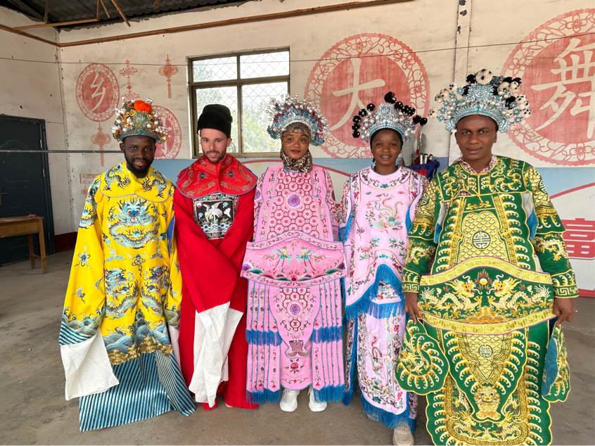 首先,学生们来到石门镇大岱村,在这里欣赏了由村民自发组建的京剧团带来的表演。德高望重的团长详细地向学生们介绍了剧服、道具和乐器,在老师们的指导下,国际学生穿戏服,唱京剧,深切感受中华戏剧文化之美,赞叹中国京剧文化的博大精深。