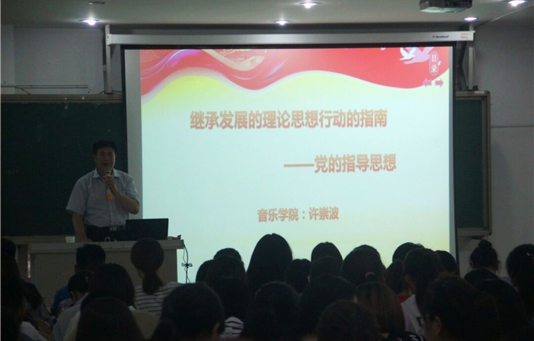 5月31日晚,第十五期入党积极分子培训第八讲在物流学院201教室举行。体育与健康学院、物流学院、教育学院全体入党积极分子参加。音乐学院党委书记许崇波为全体入党积极分子授课,党课主题为“继承发展的理论思想行动的指南――党的指导思想”。