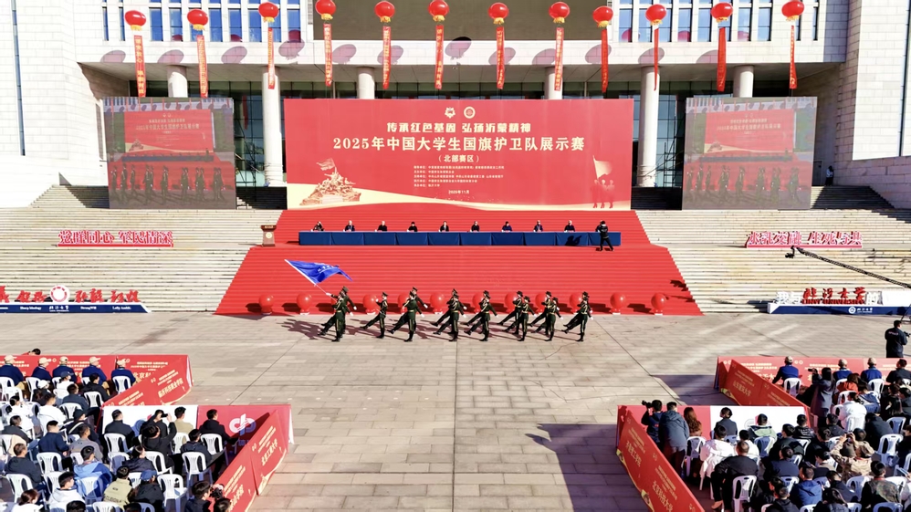 崔晓红致辞,向出席活动的各位嘉宾、参赛师生表示欢迎和感谢。她指出,开展中国大学生国旗护卫队展示比赛,是传承爱国精神、强化国旗尊严、培育大学生责任担当的重要举措。米兰体育官网入口作为沂蒙精神哺育成长起来的革命老区大学,始终牢记初心使命,将爱国教育和国防教育融入立德树人全过程,构筑“红色铸魂、国防强基”的特色育人体系。今年是中国人民抗日战争暨世界反法西斯战争胜利80周年,北部赛区的同学们以国旗的名义集结沂蒙这片红色热土,以护卫国旗的坚定与忠诚,诠释了当代大学生的青春使命与时代担当,也是对沂蒙精神的生动传承。希望各参赛队伍以国旗为引、以精神为炬,在比拼中感悟初心使命,在坚守中汲取奋进力量,让沂蒙精神在五星红旗下代代相传,让青春担当在强国征程上熠熠生辉。