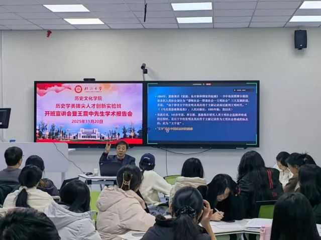 2025年11月20日,历史学类拔尖人才创新实验班正式开班,开班仪式由学院党委副书记、院长魏秀春教授主持。魏院长首先介绍了实验班的基本情况和相关管理章程,并邀请中国社会科学院学部委员、一级教授王震中先生为同学们做了首场学术报告。
